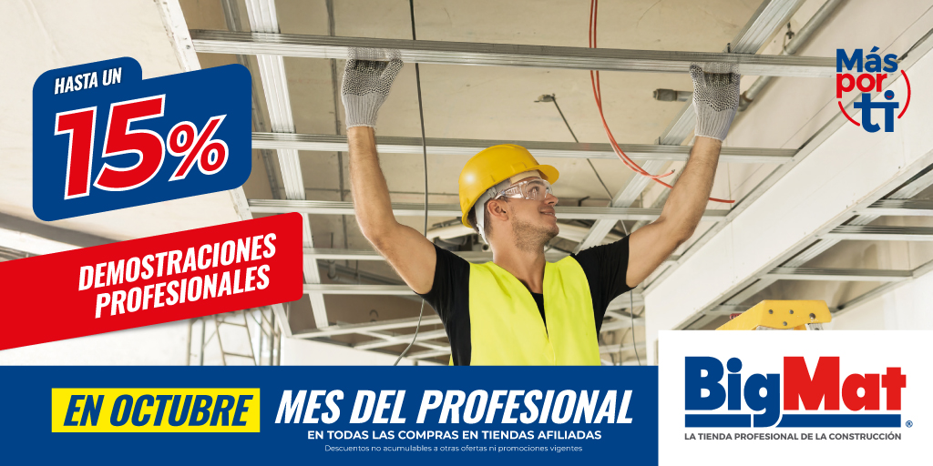 Publicado : 30/09/2025 Mes del Profesional - Categorías : Noticias Durante todo octubre, celebramos tu trabajo con: Hasta un 15% de descuento en marcas seleccionadas. Demostraciones profesionales exclusivas. ¡Y muchas más sorpresas pensadas para ti! Porque en BigMat sabemos que ser profesional es más que un oficio… ¡es una pasión! Ven a BigMat Susavi y aprovecha estas ventajas del 1 al 31 de octubre. Descuentos no acumulables a otras promociones.
